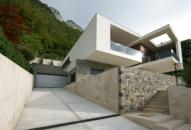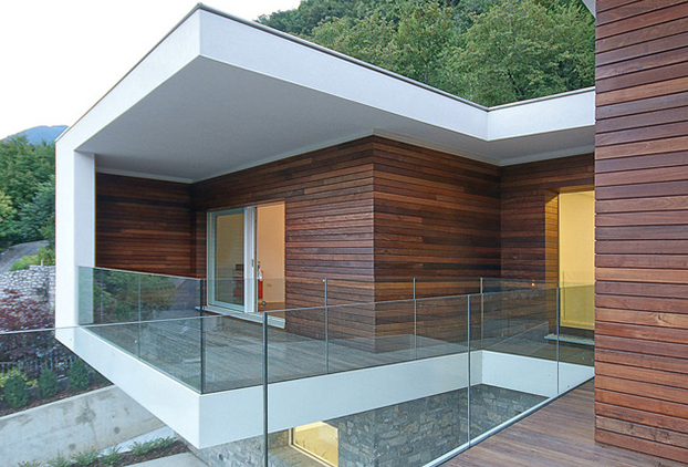 I rivestimenti e pavimenti che rivestono gli spazi esterni di questa moderna villa dovevano integrarsi con la pietra esistente e con la modernità della casa e quindi la scelta è ricaduta sul legno di Ipe trattato con olio specifico per gli esterni per garantire bellezza e durata. I dettagli sono stati curati attentamente, sia durante la progettazione che soprattutto in fase di realizzazione. Il pavimento con un andamento orizzontale si unisce armoniosamente al rivestimento delle pareti creando un effetto di continuità e leggerezza.